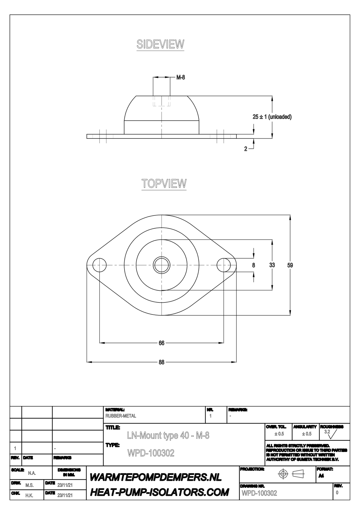 LN-Mounts are vibration isolators for both indoor and outdoor installations of heat pump modules . These offer a relatively high vibration isolation. The LN Mounts are available in two rubber hardnesses and provided with a corrosion-resistant coating for outdoor installations. Height settings are of course also available, see section mounting materials.